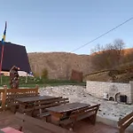 The kitchen amenities at the Trnovo accommodation feature coffee and tea makers, and an oven, provided in an outdoor dining area. The accommodation can be reached by car in 42 minutes from Sarajevo airport.